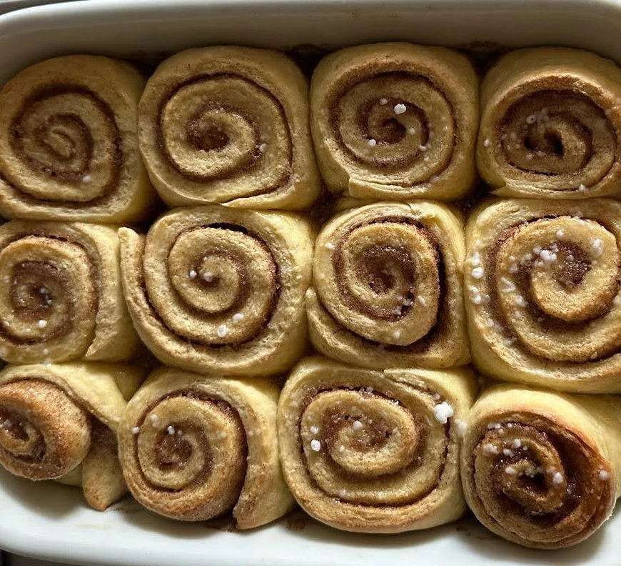 farina 00, zucchero di canna, acqua, latte, burro per il ripieno, burro per l'impasto, zucchero , zucchero a velo, lievito di birra fresco, sale, cannella, uova